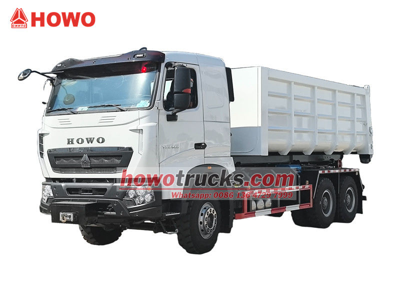 شاحنة التحميل الخطافية HOWO سعة 20 طنًا تسمى أيضًا شاحنة القمامة ذات الذراع الخطافية HOWO 6x4، وشاحنة رفع الخطاف ذات العجلات العشر HOWO، وشاحنة رفع الخطاف HOWO، وشاحنة القمامة الخطافية HOWO بقوة 440 حصانًا، وما إلى ذلك. تم تعديل المركبة على هيكل HOWO 6x4 شديد التحمل، وهي مزودة بمحرك ديزل قوي MC11.44-50 وعلبة تروس HW19710، مما يوفر نقلًا سلسًا وقويًا للتروس، ويضمن أداء قيادة ممتازًا وثباتًا في التشغيل. وهي تستخدم على نطاق واسع في بيئات عمل متنوعة مثل الطرق الحضرية والمناطق السكنية والمصانع ومواقع البناء.