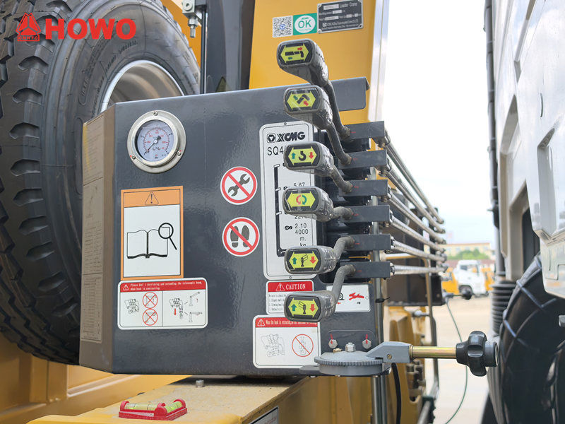 ●تتميز المركبة بصندوق شحن أبعاده 3800×2400×450 مم، وهي مزودة برافعة XCMG SQ4SK2Q قادرة على رفع ما يصل إلى 4 أطنان. يتم التحكم بالرافعة عبر أذرع هيدروليكية يدوية موجودة على كلا الجانبين، مما يسمح بتشغيل سلس للدعامات الجانبية، بالإضافة إلى تمديد ذراع الرافعة وسحبه وتدويره، وذلك لضمان كفاءة عالية في مناولة الأحمال.