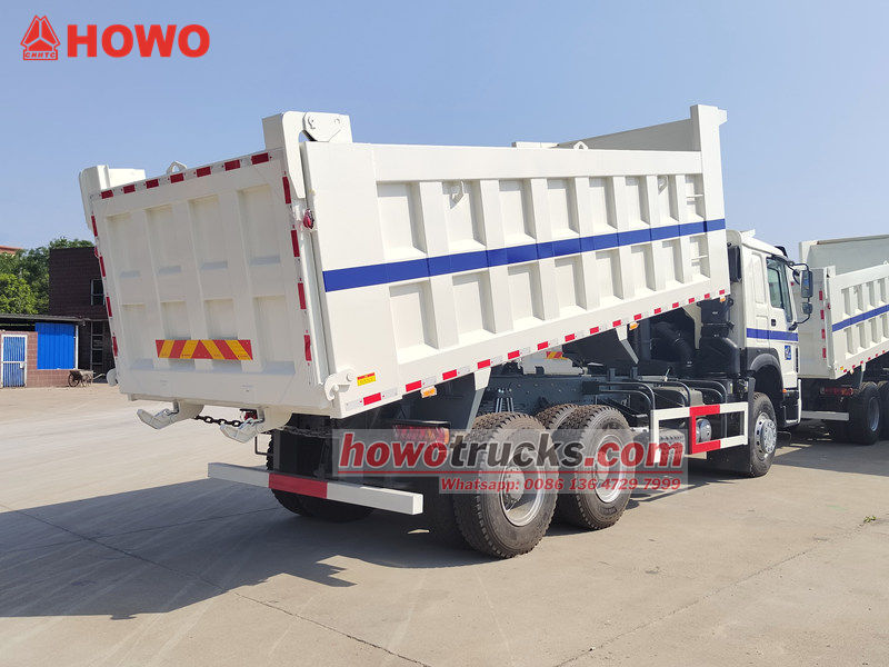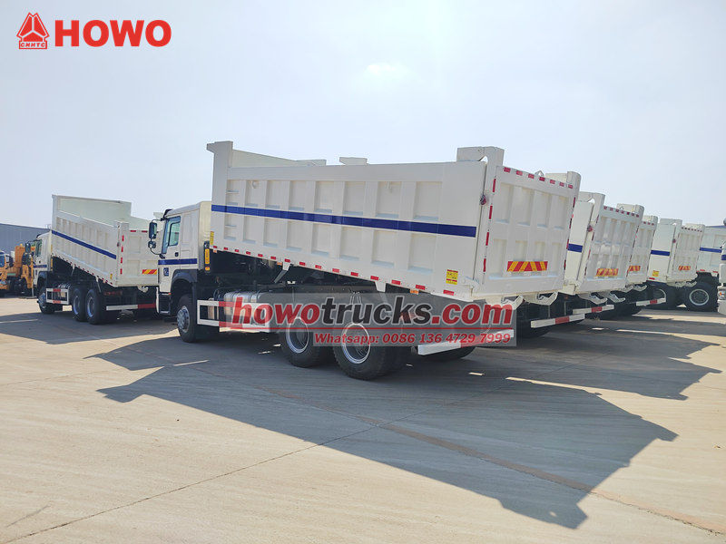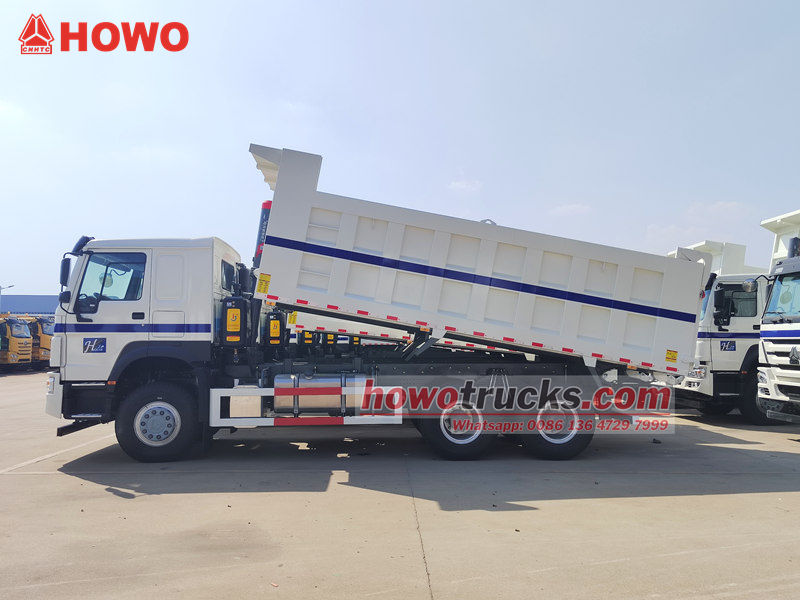 تم تعديل شاحنة HOWO 6x4 القلابة على أساس هيكل HOWO HW76، بقاعدة عجلات 3200+1400 مم، ومجهزة بمحرك ديزل WP10.380E22 بقوة 380 حصان، وناقل حركة HW19710، و10 سرعات أمامية، وسرعتين خلفيتين، وصندوق قلاب مصنوع من الفولاذ الكربوني بسماكة جانبية 8 مم، وسماكة سفلية 10 مم، وأبعاد 5200×2300×1400 مم، مع رفع أمامي علوي، ورفع مستقر، وتفريغ نظيف وسريع، ويمكن فتح الأبواب الخلفية، ويتم التحكم في المركبة بواسطة صمام تحكم على جانب السائق، مما يجعلها سهلة التشغيل.