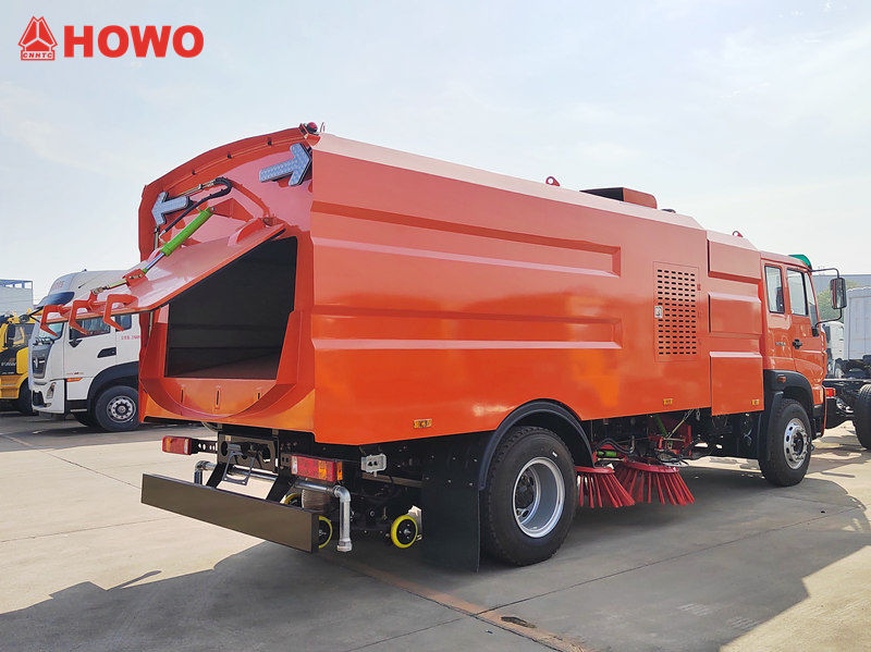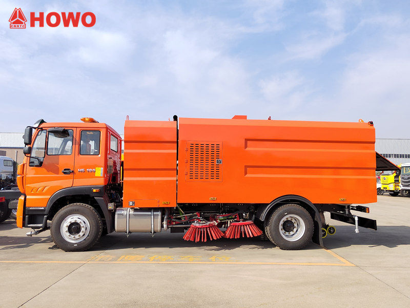تتكون شاحنة كنس الشوارع من سينوتروك من هيكل، وآلية كنس، ونظام تجميع غبار، ونظام رش مياه وكبح للغبار. الهيكل مصنوع من الفولاذ المقاوم للصدأ، مما يوفر سعة كبيرة وقوة عالية، ويستوعب النفايات التي يتم كنسها بكفاءة. آلية الكنس مزودة بأقراص كنس متعددة وفرش دوارة، مما يضمن تنظيفًا شاملاً لكامل عرض الطريق.
