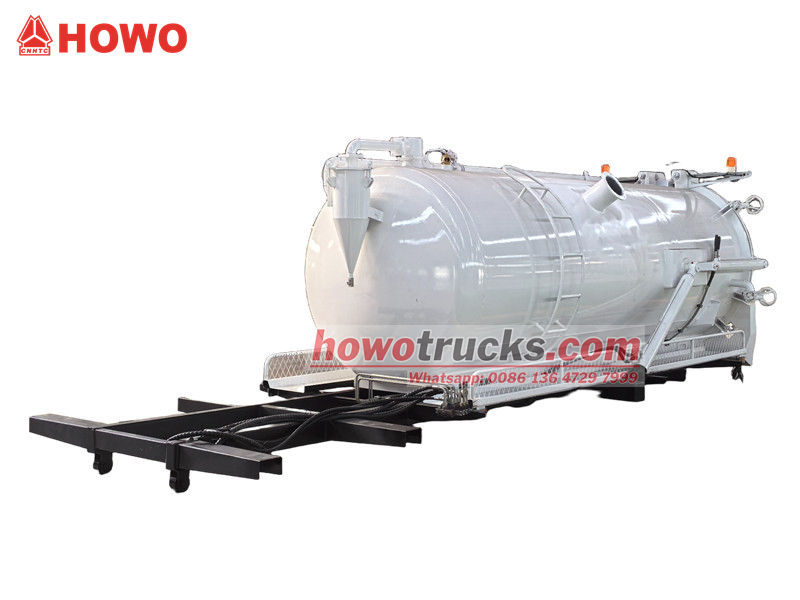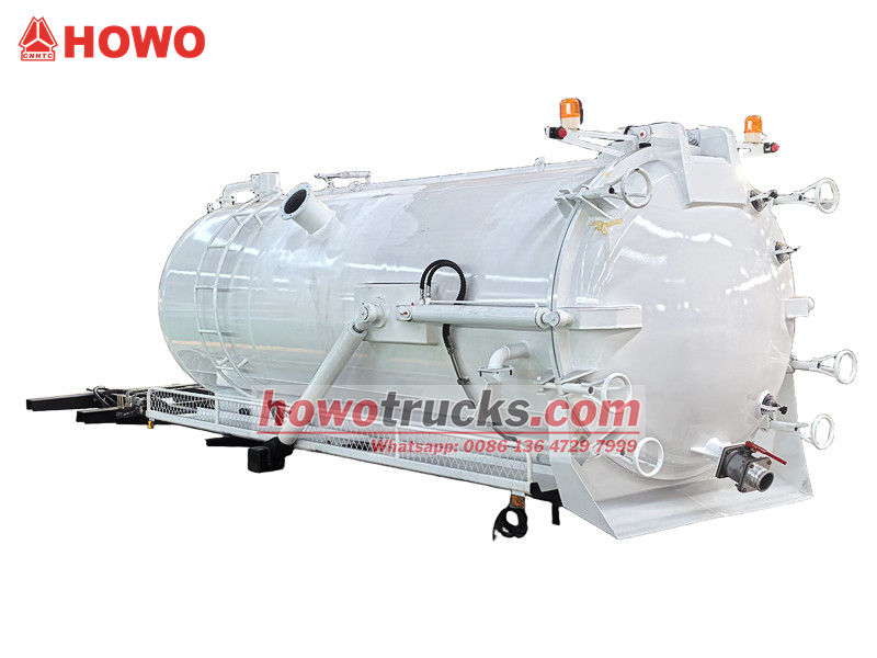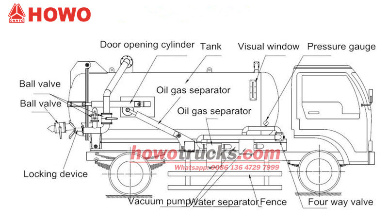 تُولّد مضخة التفريغ ضغطًا سلبيًا، فتسحب مياه الصرف الصحي والحمأة والملوثات الأخرى إلى خزان مياه صرف صحي محكم الإغلاق عبر خرطوم شفط. ويُجهّز الخزان بجهاز لمنع التدفق العكسي لمياه الصرف الصحي. طقم هيكل شاحنة تنظيف الصرف الصحي وهو مزود بمقياس مستوى ومقياس ضغط لضمان التشغيل الفعال والآمن.