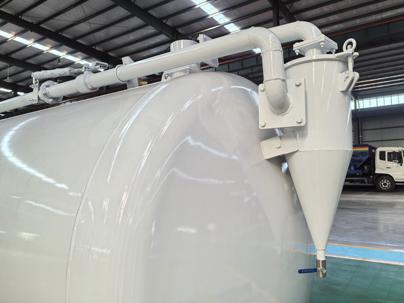 ●تُعدّ مضخة التفريغ عنصرًا أساسيًا، إذ توفر قدرة شفط عالية، قادرة على شفط كميات كبيرة من النفايات بسرعة. وقد زُوّدت المجموعة بصمام مانع للفيضان، وفاصل للزيت والغاز، ونافذة لمراقبة مستوى السائل، وآلية فتح هيدروليكية للباب الخلفي، مما يضمن بنيةً مُحكمة وأداءً موثوقًا.