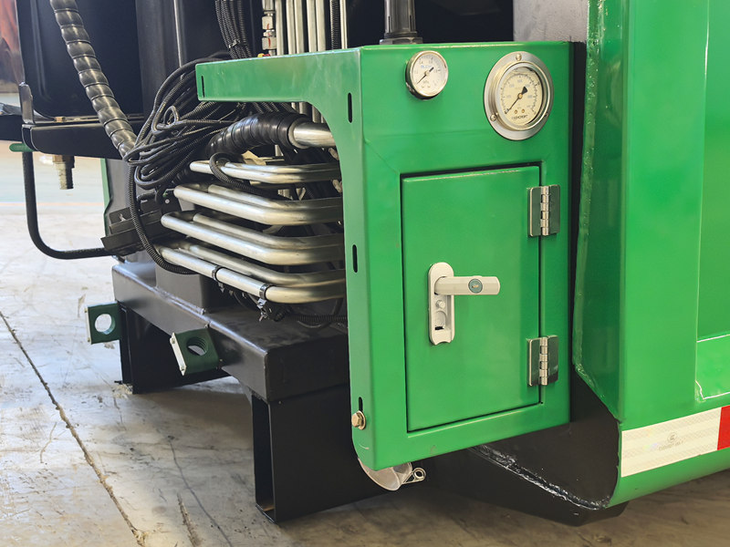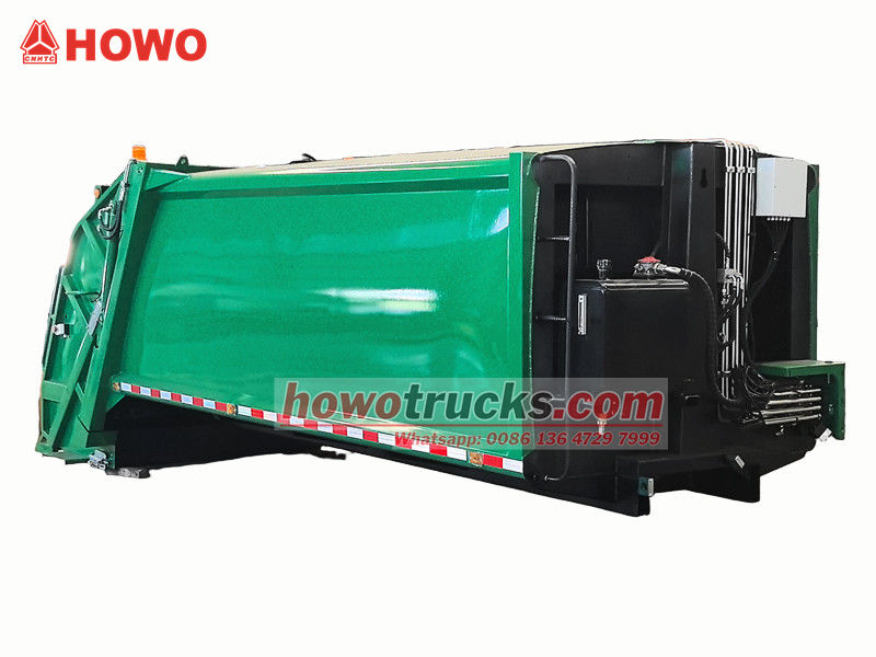 يُعدّ هيكل ضاغطة النفايات الخلفية بسعة 10 أمتار مكعبة النظام التشغيلي الأساسي للمركبة، ويتألف بشكل رئيسي من حجرة نفايات محكمة الإغلاق، وضاغط دفع، وآلية تحميل. يمنع الهيكل المتين والمقاوم للصدمات، بالإضافة إلى إحكام إغلاقه الممتاز، تسرب مياه الصرف الصحي والروائح. أثناء التشغيل، وبعد أن تستقبل قادوس التحميل النفايات، تقوم مكشطة تعمل بنظام هيدروليكي بكشطها وإدخالها إلى الحجرة. ثم يقوم ضاغط الدفع بتطبيق ضغط، مما يؤدي إلى ضغط النفايات لتقليل حجمها وزيادة سعة التحميل. تبلغ سعة التحميل القصوى 12 مترًا مكعبًا، وتدعم مجموعة متنوعة من طرق التحميل والتفريغ لتلبية مختلف الاحتياجات التشغيلية.