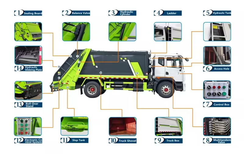 ●تتميز الآلة بختم قوي مانع للتسرب، مع قفل هيدروليكيحجرة القمامة، وختم مطاطي مزدوج الطبقات على الباب الخلفي، وحوض مياه خاص أسفل السيارة لمنع الانسكاب وتسرب مياه الصرف الصحي وانتشار الروائح بشكل فعال، مما يؤدي إلى القضاء على التلوث الثانوي.