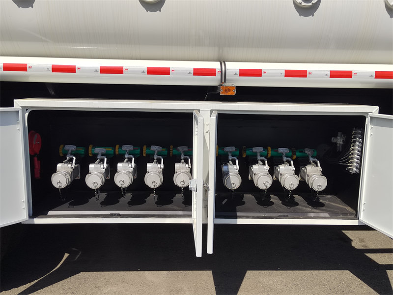 مجهزة بأغطية فتحات تفتيش مطابقة للمعايير الأوروبية (مع صمامات تهوية وصمامات منع التدفق الزائد)، وأنظمة استعادة الأبخرة، وصمامات من سبائك الألومنيوم المقاومة للحريق. يوفر الخزان المصنوع من الفولاذ الكربوني المقوى بسماكة 6 مم العديد من وسائل الحماية لمنع التسربات ومخاطر الانفجار بشكل فعال، بما يتوافق مع معايير نقل المواد الخطرة.