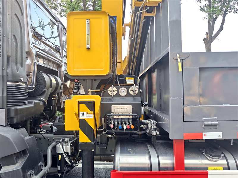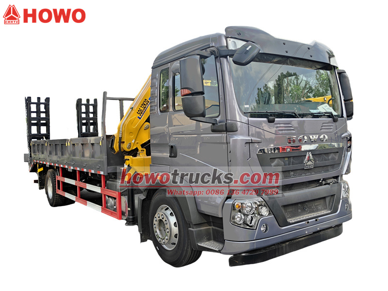 ♦ شاحنة نقل البضائع Howo 4x2 مزودة برافعة مفصلية سعة 6 أطنان (عزم دوران 10 أطنان/ارتفاع 8.6 متر) ووظيفة نقل مسطحة سعة 20 طنًا.