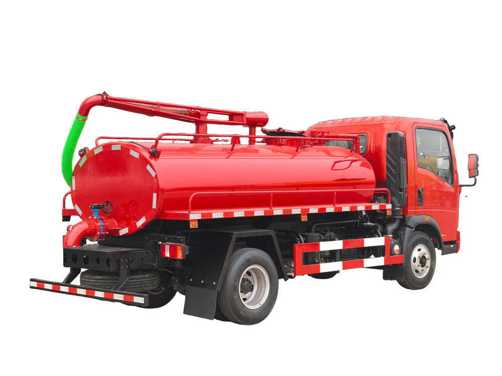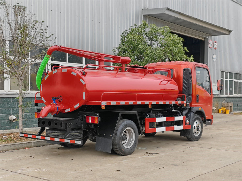 تعتمد شاحنة شفط خزانات الصرف الصحي HOWO 4x4 RHD سعة 4 أمتار مكعبة على كابينة HOWO Hanjiang 1880 أحادية الصف، ونظام دفع رباعي 4x4، ومقود على اليمين، وقاعدة عجلات 3360 مم، ومجهزة بمحرك YN4102QBZL بقوة 116 حصانًا، وعلبة تروس WLY6TS40 بست سرعات، والجزء العلوي عبارة عن خزان صرف صحي سعة 4 أمتار مكعبة، مصنوع من الفولاذ الكربوني، ومعالج ضد التآكل والصدأ، ومجهز بمضخة تفريغ حلقية مائية Yifeng SK-6، وأقصى سرعة ضخ: 6 أمتار مكعبة/دقيقة، وسرعة دوران: 970 دورة في الدقيقة، وذراع شفط علوي لخزان الصرف الصحي بطول 6 أمتار، ومجهز بنافذة مراقبة لخزان الصرف الصحي، وصمام فيضان، ومقياس ضغط، وصمام عادم، إلخ.