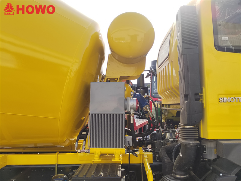 تعتمد شاحنة خلط الخرسانة HOWO سعة 5 أمتار مكعبة على هيكل HOWO 2080 ذي الكابينة المزدوجة، بوزن إجمالي 16 طنًا وقاعدة عجلات 3800 مم. وهي مزودة بمحرك SINOTRUK MC05.18-40 بقوة 180 حصانًا وعلبة تروس HW90510C ذات 10 سرعات. تبلغ سعة خزان الخلط العلوي 5 أمتار مكعبة وهو مصنوع من فولاذ المنغنيز Q355. يبلغ سمك جسم الخزان 4 مم وسمك الجزء العلوي 6 مم. وهي مجهزة بمخفض سرعة، ومضخة ومحرك هيدروليكي، ومبرد، ووحدة تحكم بالهواء، وخزان مياه بسعة 400 لتر، ونظام تزويد مياه بضغط الهواء، ومقابض تحكم مزدوجة في الخلف، ونظام تشغيل بالوصلات، ومعدل مخلفات منخفض.