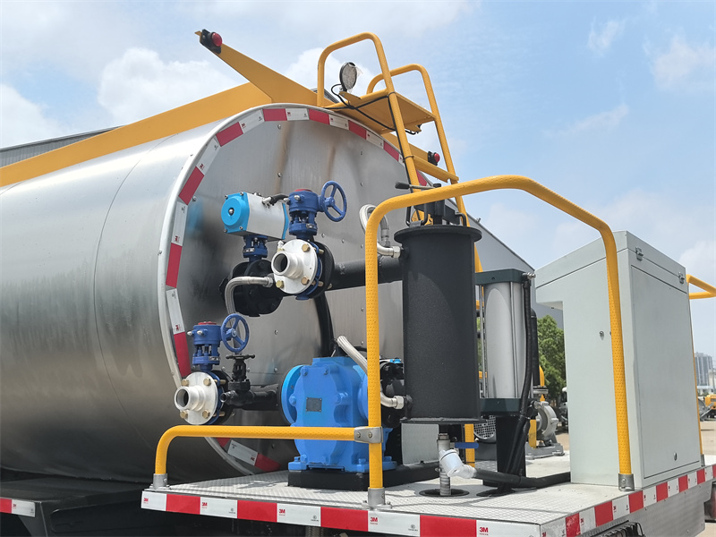 • سعة الخزان: 8 أمتار مكعبة. مصنوع من صفائح فولاذية كربونية عالية الجودة، ويخضع الجزء الداخلي لمعالجة احترافية مضادة للتآكل (مثل رش طلاء الأسفلت الإيبوكسي)، بينما يُغطى الجزء الخارجي بمادة عازلة عالية الكفاءة، مما ينتج عنه أداء عزل حراري ممتاز، مع انخفاض في درجة حرارة الأسفلت بمقدار ≤2°ج/ساعة.