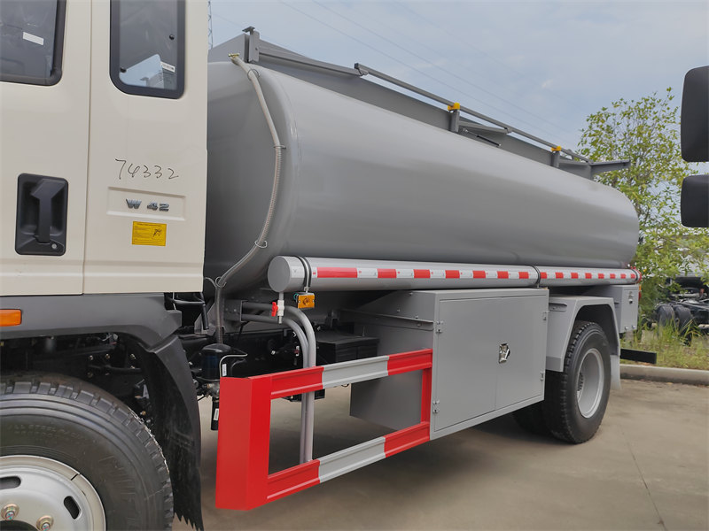 شاحنة توزيع الوقود HOWO سعة 8000 لتر هي شاحنة صهريج مُعدّلة، مبنية على هيكل HOWO خفيف الوزن، ومجهزة بصهريج وقود سعة 8000 لتر ومضخة وقود من علامة تجارية صينية شهيرة. تُستخدم الشاحنة بشكل أساسي لتخزين الوقود ونقله وتزويده بالوقود. صُنع صهريج الوقود من فولاذ كربوني عالي الجودة بسماكة 5 مم، ومطلي بطلاء مقاوم للصدأ من الداخل والخارج.