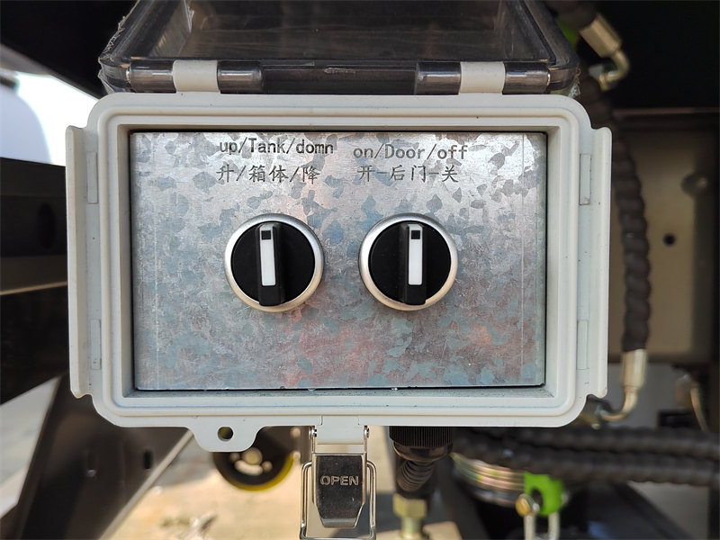 تم تجهيز الباب الخلفي للخزان بآلية قفل هيدروليكية من نوع الدبوس. يتيح هذا النظام فتح الباب وإغلاقه وقفله تلقائيًا بلمسة واحدة، مما يضمن إحكامًا تامًا لمنع تسرب النفايات ومياه الصرف الصحي بشكل فعال.