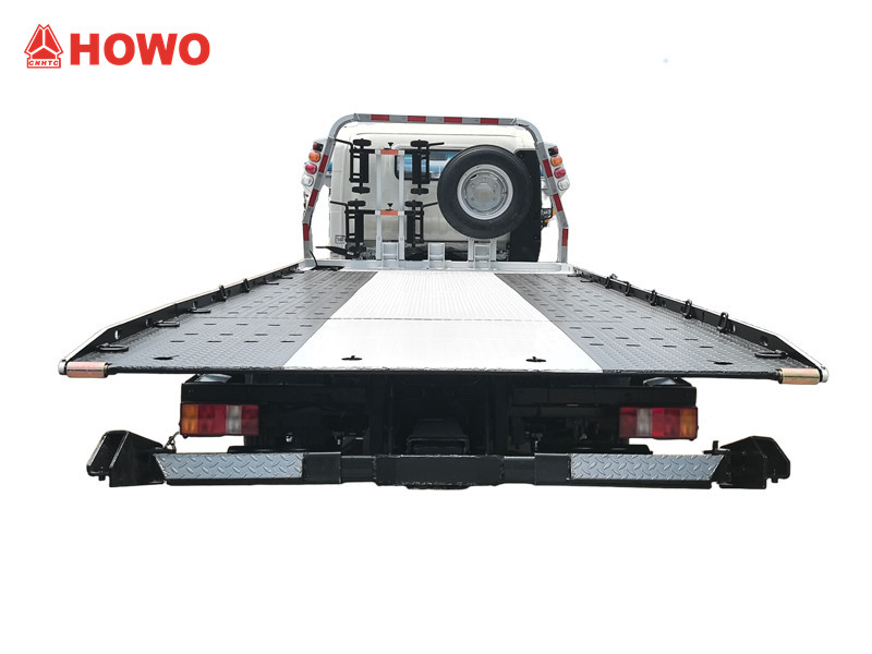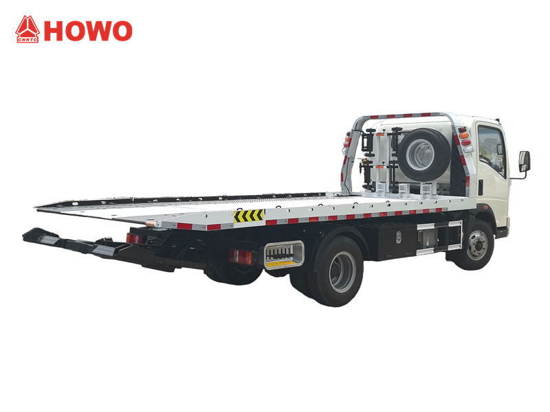 تُستخدم شاحنة سحب السيارات HOWO المسطحة سعة 3 أطنان بشكل أساسي لإزالة المركبات المعطلة أو المتضررة أو المتوقفة بشكل غير قانوني على الطريق لضمان انسيابية حركة المرور. وهي مركبة إنقاذ معدلة على هيكل Howo خفيف الوزن بمقود على اليمين، بقاعدة عجلات 3360 مم، وعلبة تروس WLY6TS55، وإطارات 7.00R16، ومجهزة بمكيف هواء، ومنفذ USB، ونظام توجيه. كما أنها مزودة بمحرك ديزل Cummins ISF3.8S3141 بقوة 141 حصان، رباعي الأسطوانات. تتميز الشاحنة بمنصة تحميل سعتها 3 أطنان، ورافعة بطول 21 مترًا، وحامل للعجلات. وتُستخدم على نطاق واسع في الطرق السريعة، والطرق الحضرية، ومواقف السيارات، وغيرها من الأماكن.