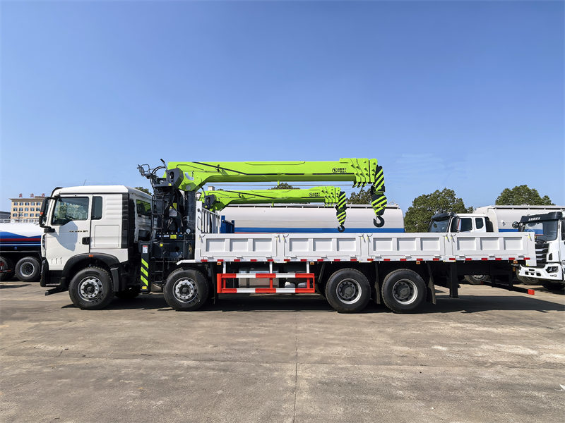 يمكن لشاحنة Howo ذات الذراع الرافعة أن تحمل كلاً من حديد التسليح، مما يتطلب ظرفًا كهرومغناطيسيًا للخطاف الرئيسي، وألواح الخرسانة مسبقة الصب، مما يتطلب حبالًا للخطاف الثانوي.