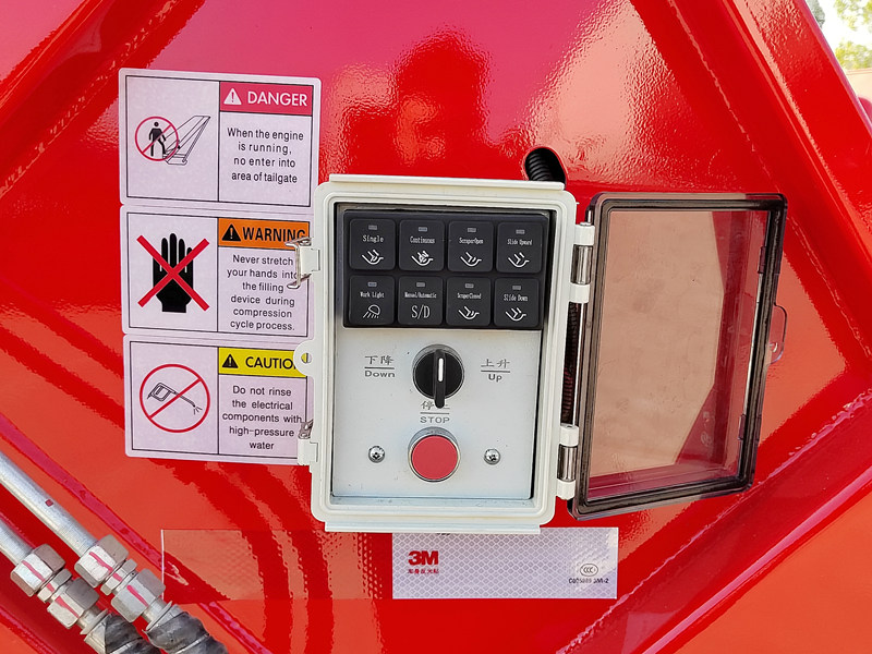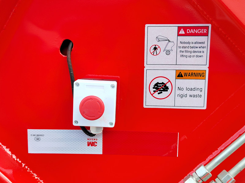 ►يسمح زر فرامل الطوارئ المصمم خصيصًا لآلية ضغط النفايات بالتوقف في أي حالة أو وضع، مما يضمن سلامة الأفراد والمعدات.