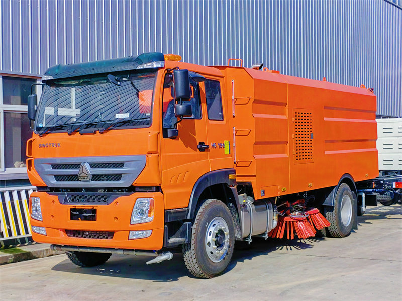 13000The HOWO H5 Truck Mounted 12cbm Road Sweeper is a professional road sweeping equipment positioned in the medium-to-heavy-duty market. Built on the Howo H5 chassis, it features a 4600mm wheelbase and a gross vehicle weight of 18,000kg. Its design balances flexibility and operational stability, allowing it to move easily through various scenarios such as city streets and industrial parks without space constraints. The vehicle offers optional left/right-hand drive to suit different regional needs. The cab is equipped with air conditioning, and the manual tilt design combined with mechanical suspension significantly improves driver comfort, making it suitable for long-term cleaning operations.